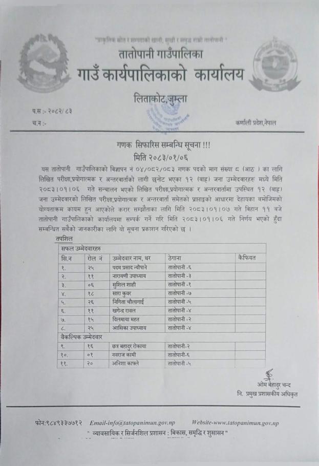 गणक सिफारिश सम्बन्धि सूचना !!